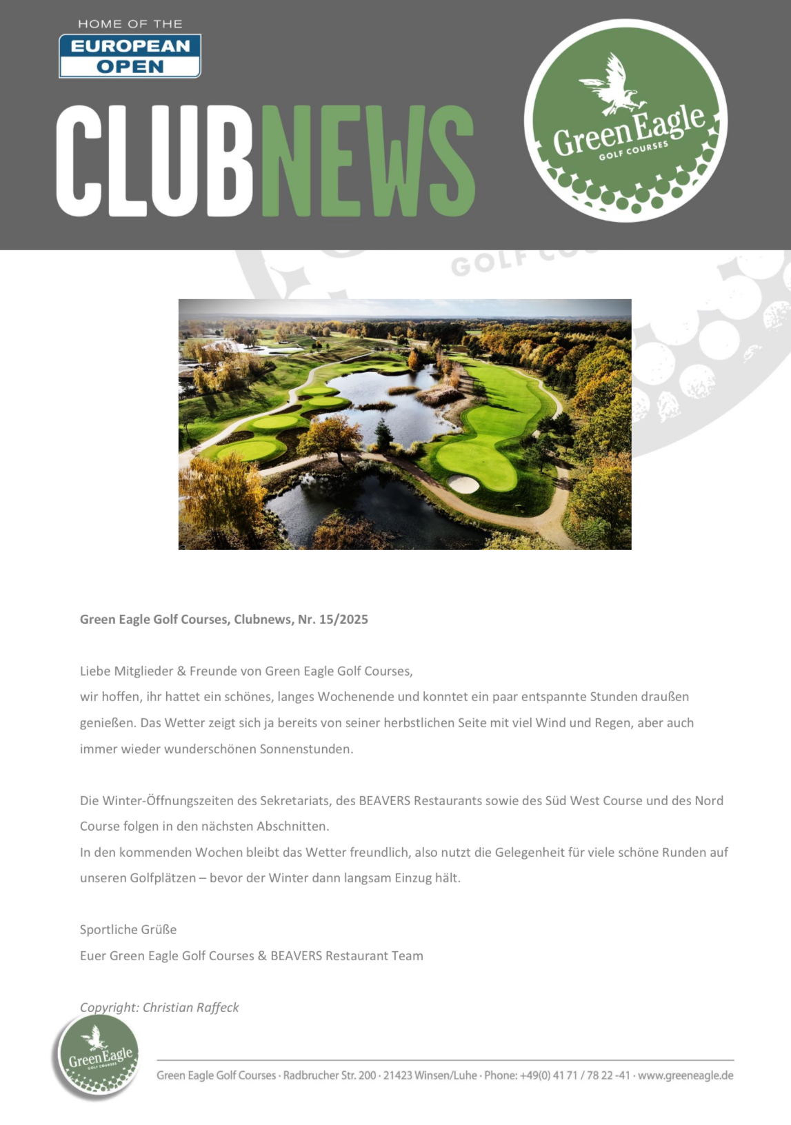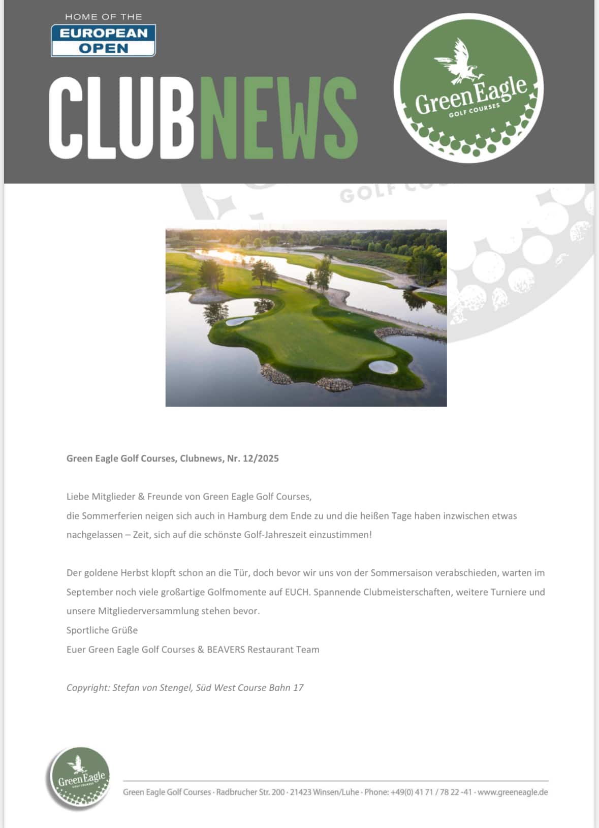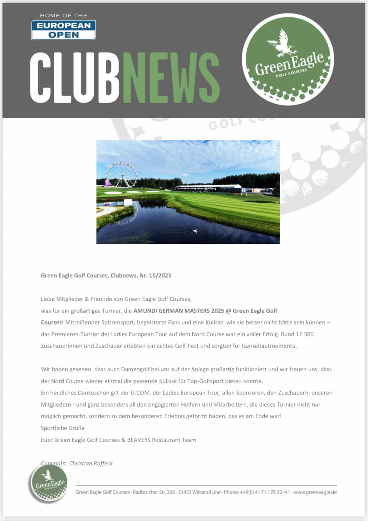 Liebe Mitglieder & Freunde von Green Eagle Golf Courses, wir haben großartige Neuigkeiten und freuen uns sehr, Euch heute mitteilen zu dürfen, dass es in der Green Eagle ACADEMY spannende Veränderungen gibt. Ab dem 1. März 2026 wird Benedict Staben als Head Pro die Leitung des Trainings übernehmen und die sportliche Entwicklung auf unserer Anlage […]