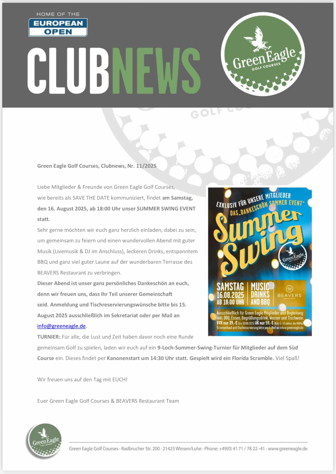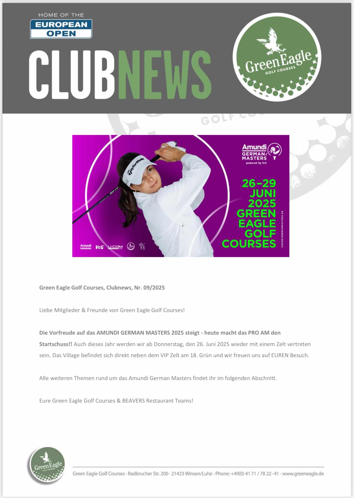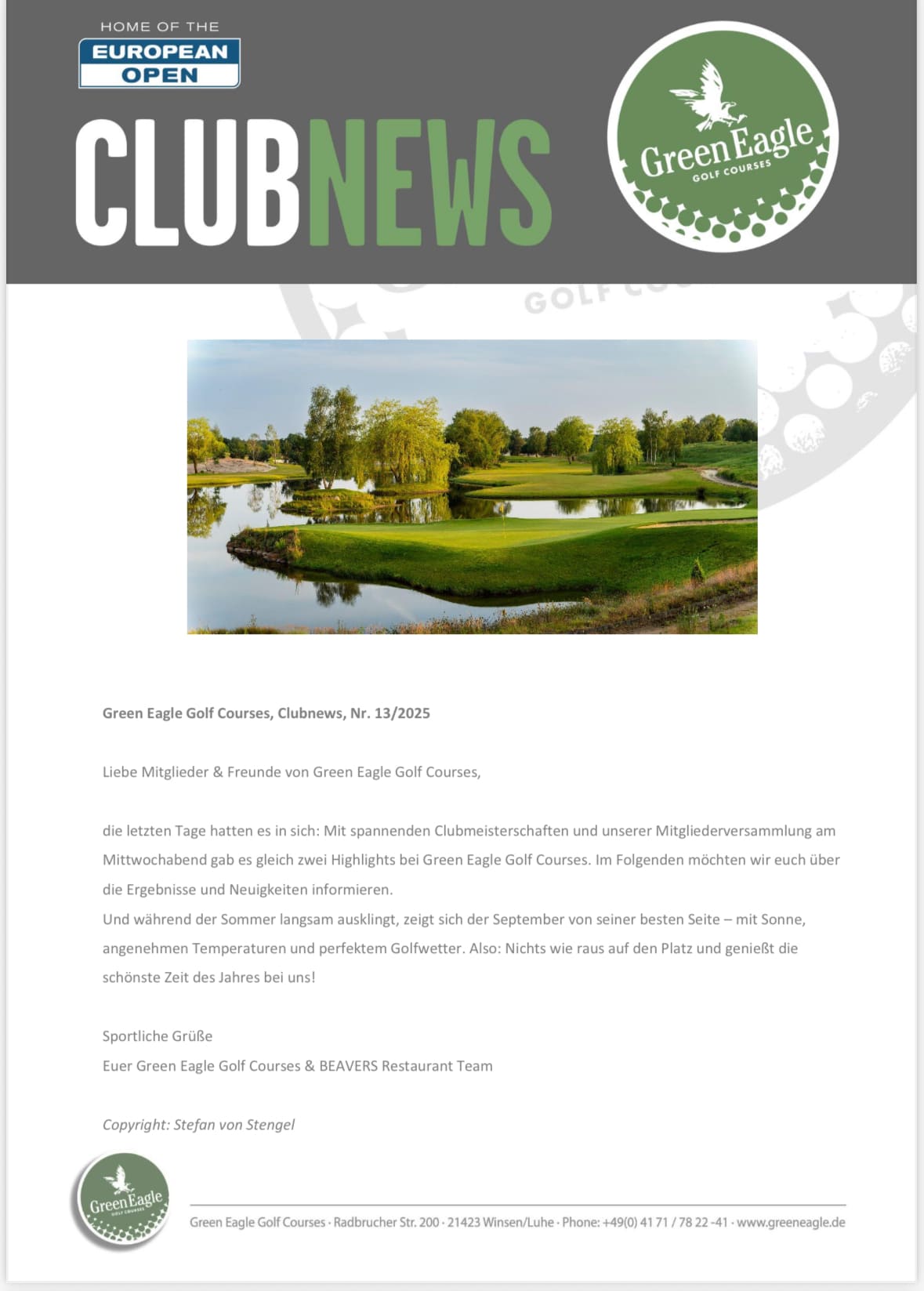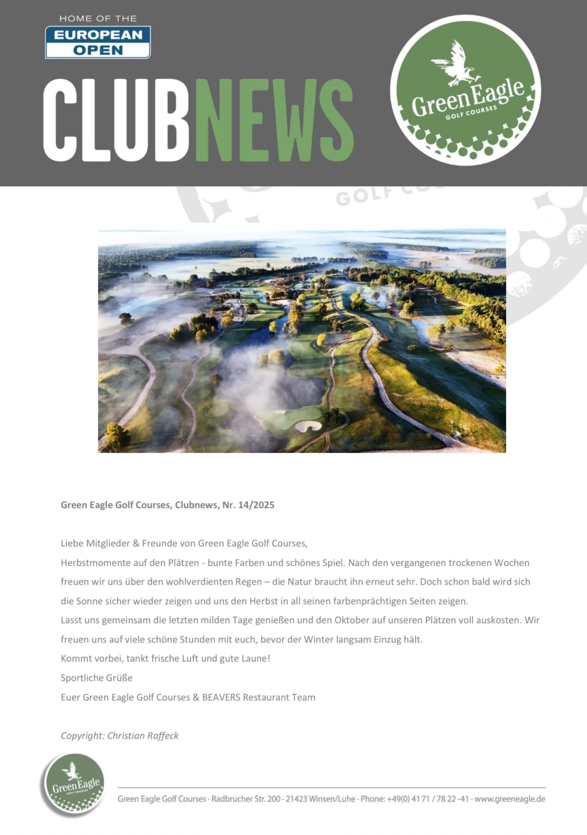 Liebe Mitglieder & Freunde von Green Eagle Golf Courses, wir haben großartige Neuigkeiten und freuen uns sehr, Euch heute mitteilen zu dürfen, dass es in der Green Eagle ACADEMY spannende Veränderungen gibt. Ab dem 1. März 2026 wird Benedict Staben als Head Pro die Leitung des Trainings übernehmen und die sportliche Entwicklung auf unserer Anlage […]